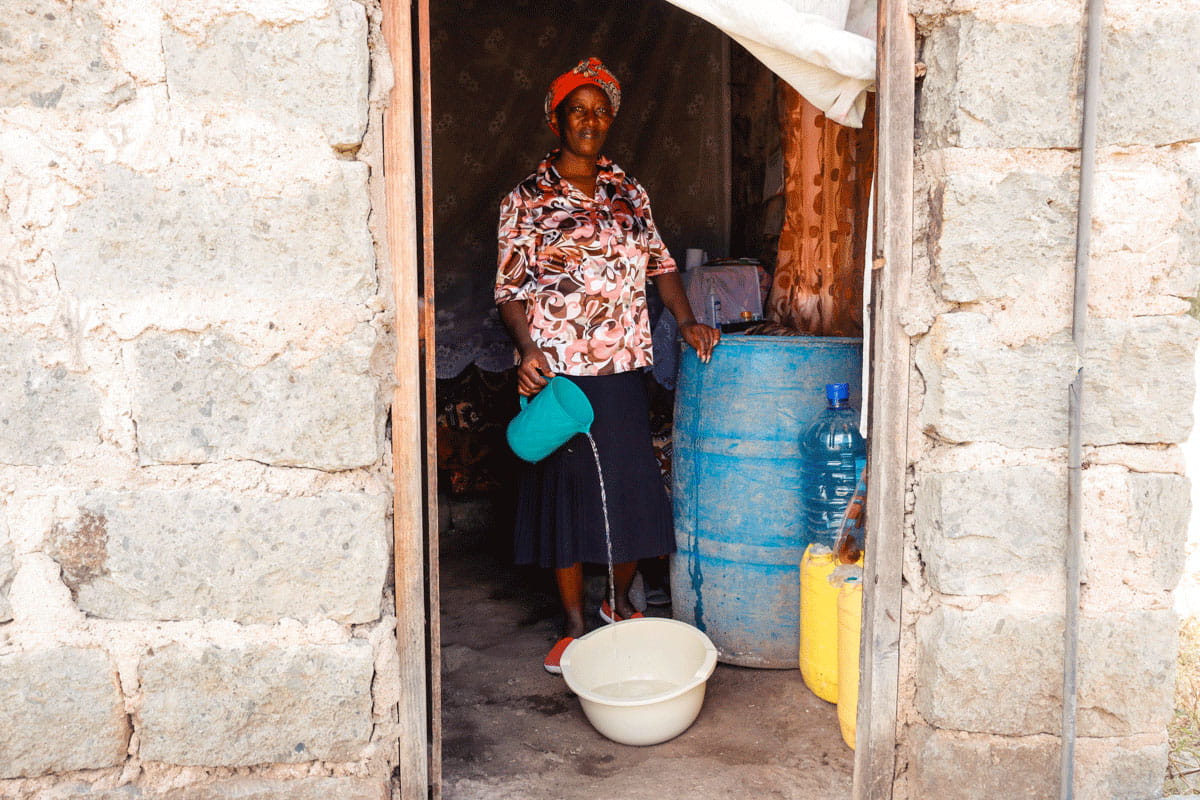 To illuminate their house in the dark, the family was using a kerosene lamp with a handheld torch. To boil water for bathing or tea, the family used a pit fire that could be dangerous to tend at night. After taking the Poverty Stoplight survey, Florah realized these deprivations were keeping her family from moving forward. With savings accumulated over time, she purchased three solar lights for the house so her children could complete their homework at night, and a clean-burning stove that could be used indoors.