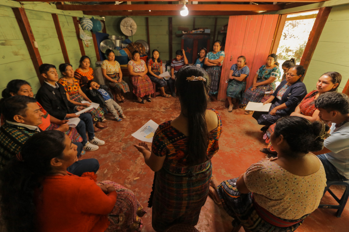 A group of mothers gather for their monthly meeting in Unbound’s Guatemala program.