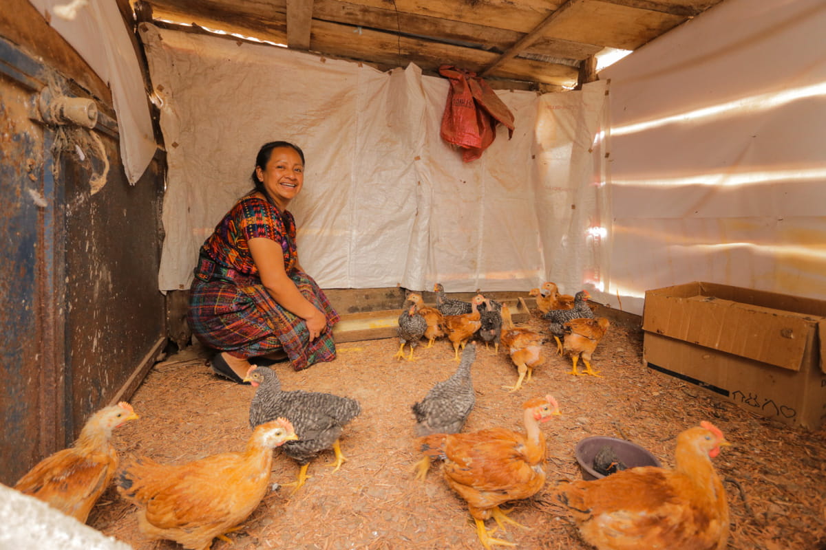 Débora first purchased 12 chickens with part of her son Hamilton’s sponsorship benefit. With the profits, she invested in more chickens, and the family’s poultry meat business took off.