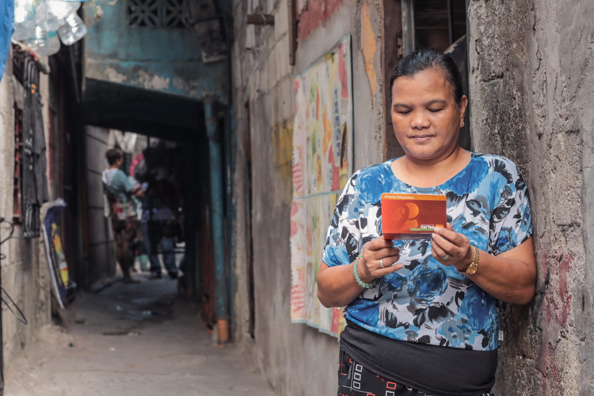 Elvira, the mother of a sponsored child in the Philippines, learned to record and track her child’s monthly direct cash benefit in a booklet. One of the largest challenges facing Unbound Philippines staff when the organization implemented the cash transfer method was that many families had never had official bank accounts and didn’t possess the documentation needed to open them.