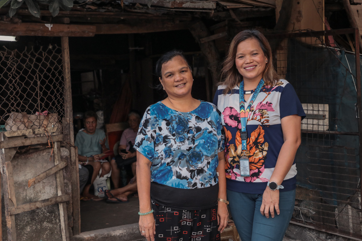 Nona Salamanque (right), a staff member of Unbound’s Quezon program in the Philippines, offers her support to mother leader Elvira at a monthly mothers group meeting.