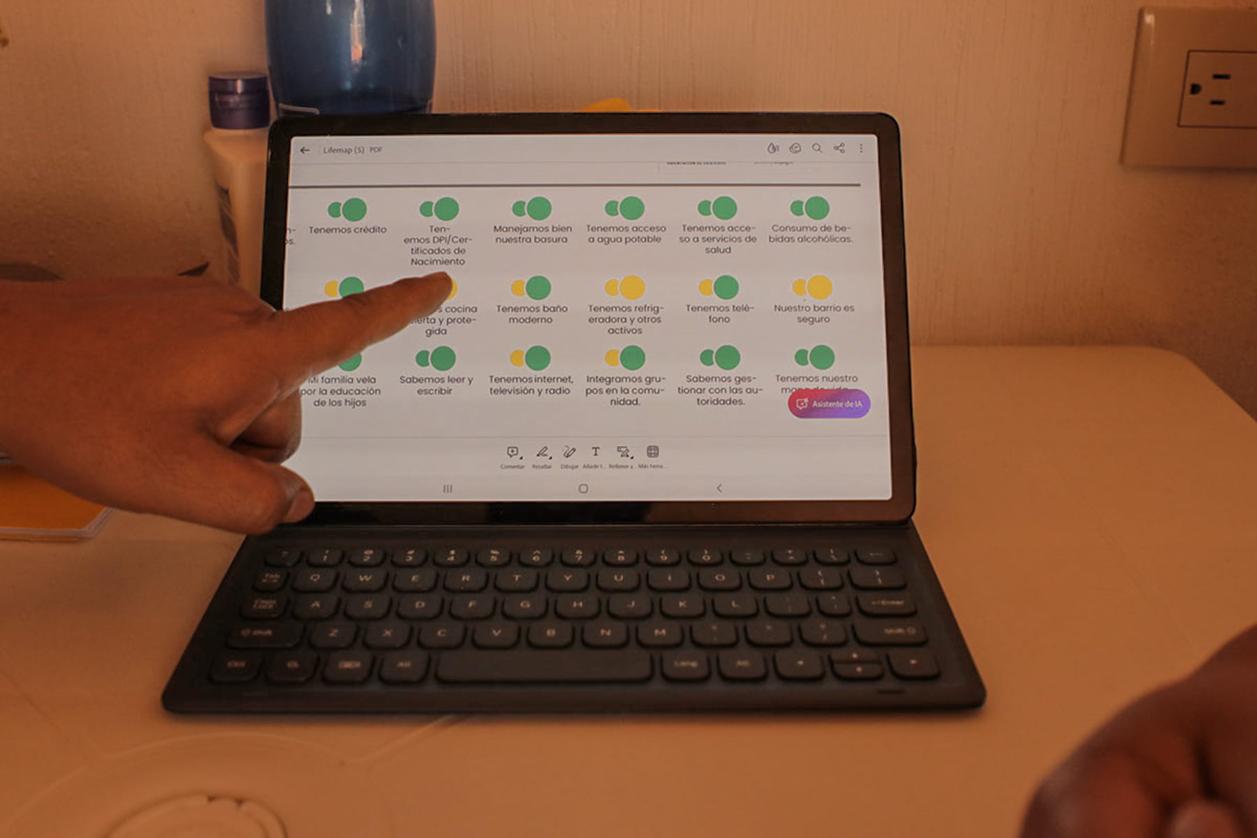 A look at the mobile technology platform Poverty Stoplight and the indicators Débora has turned to “green” (no poverty).